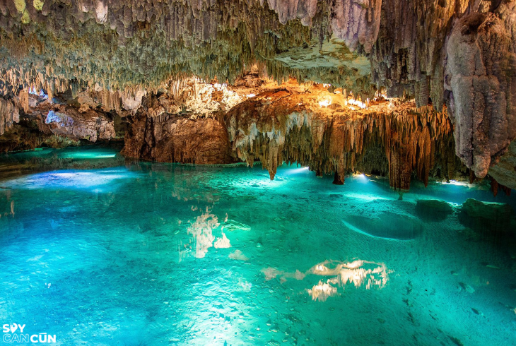 Comece o passeio com um mergulho refrescante em um cenote maia, um santuário natural de águas cristalinas e formações rochosas impressionantes. Esse mergulho revela um mundo subterrâneo fascinante, repleto de cores, tranquilidade e mistério.