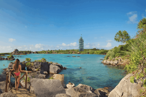 O Xel-Há é uma enseada de água cristalina onde o rio de água doce encontra o mar — o que cria um ecossistema único, cheio de peixes tropicais. O parque é voltado para snorkel e natação em ambiente completamente natural, sem estruturas artificiais. Inclui alimentação ilimitada, equipamentos de snorkel e diversas atrações aquáticas. É uma opção mais tranquila e familiar que o Xcaret, perfeita para um dia de relaxo no contato com a natureza.