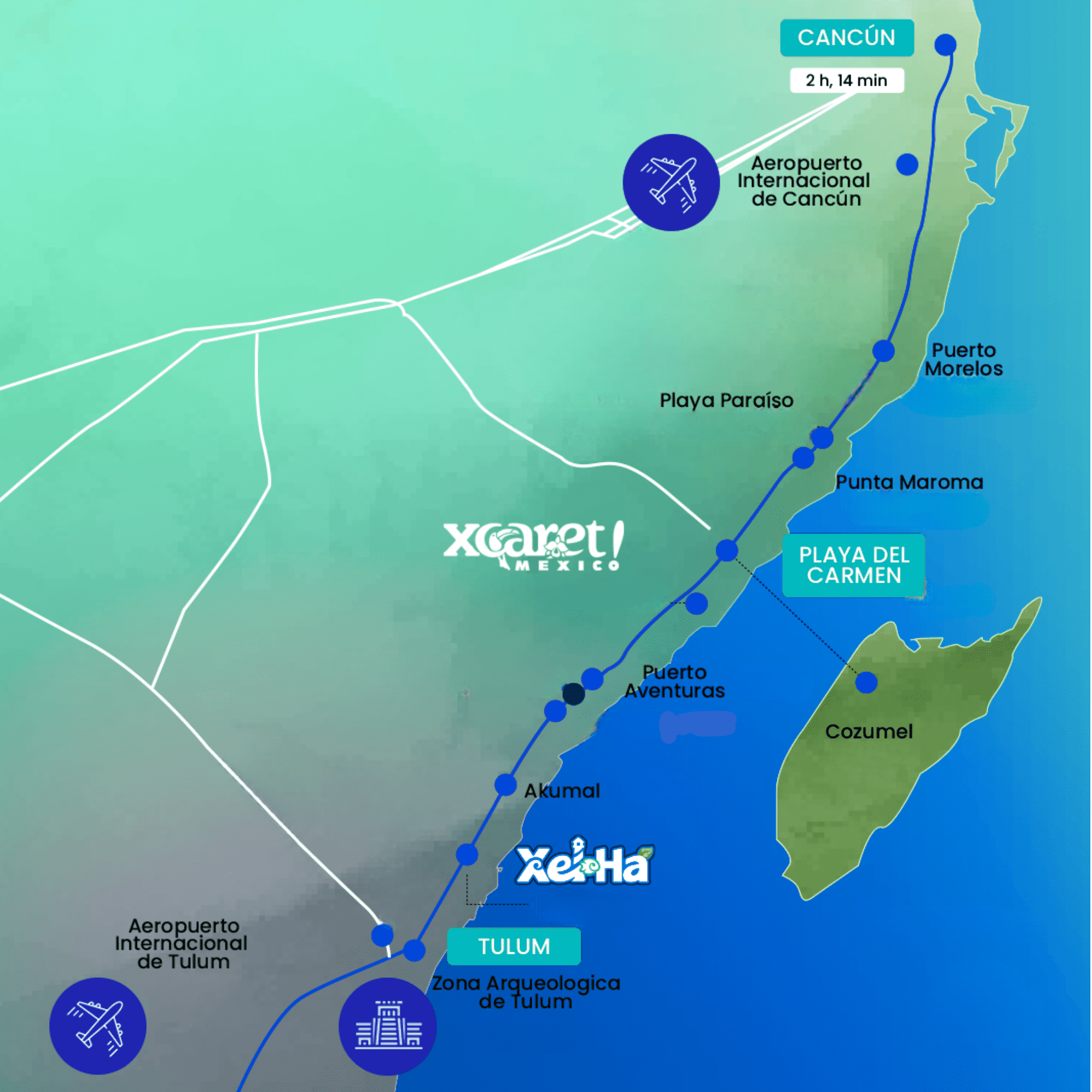 Entre todas as cidades do Caribe Mexicano, Playa del Carmen tem uma posição privilegiada: fica exatamente no meio da Riviera Maya, o trecho mais desejado do litoral mexicano. Isso significa que, ao se hospedar aqui, você está a poucos minutos dos principais parques, cenotes, ruínas maias e praias paradisíacas — tudo a uma distância curta e fácil de percorrer.